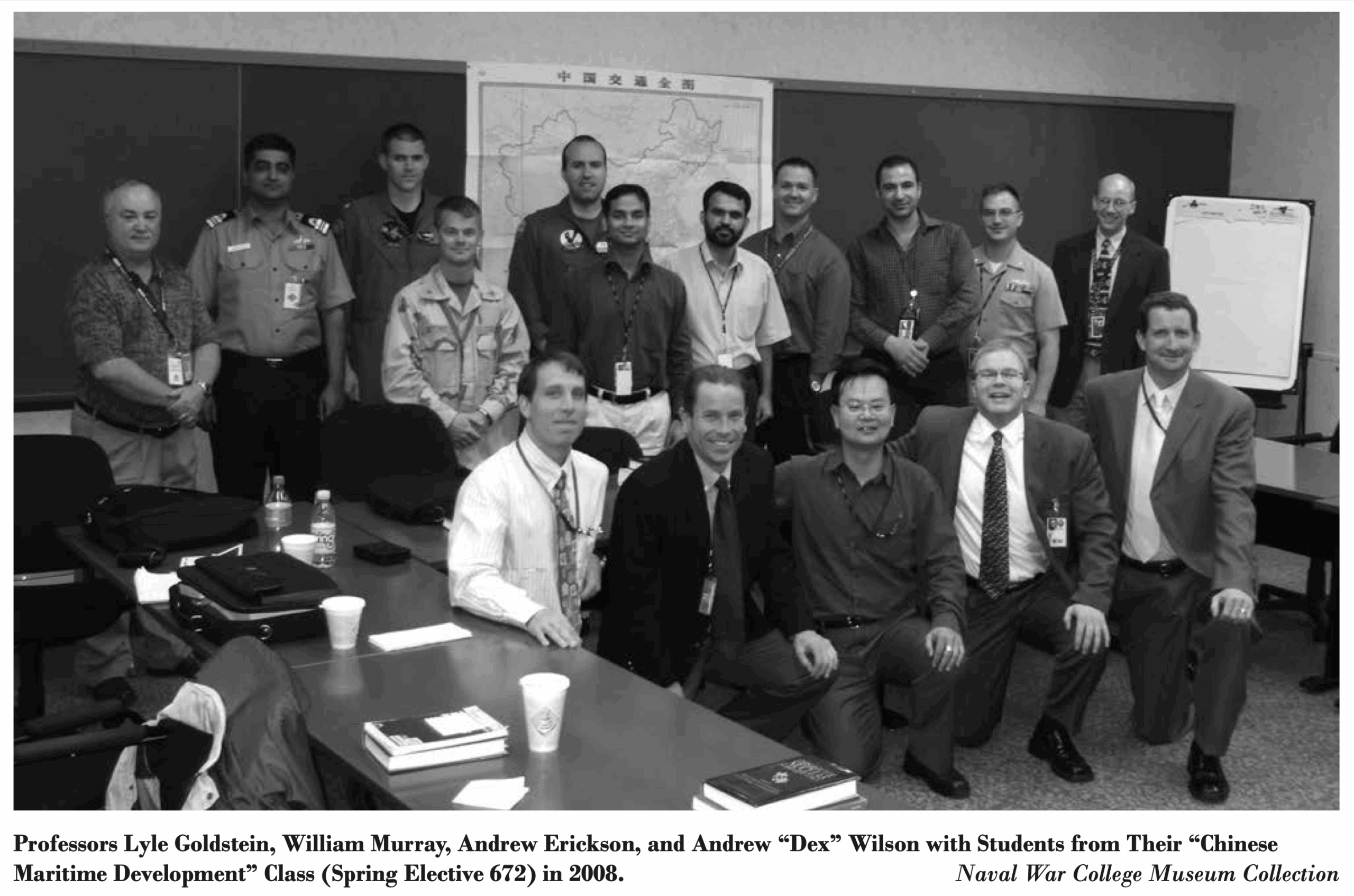 Professors Lyle Goldstein, William Murray, Andrew Erickson, and Andrew “Dex” Wilson with Students from Their “Chinese Maritime Development” Class (Spring Elective 672) in 2008. Naval War College Museum Collection