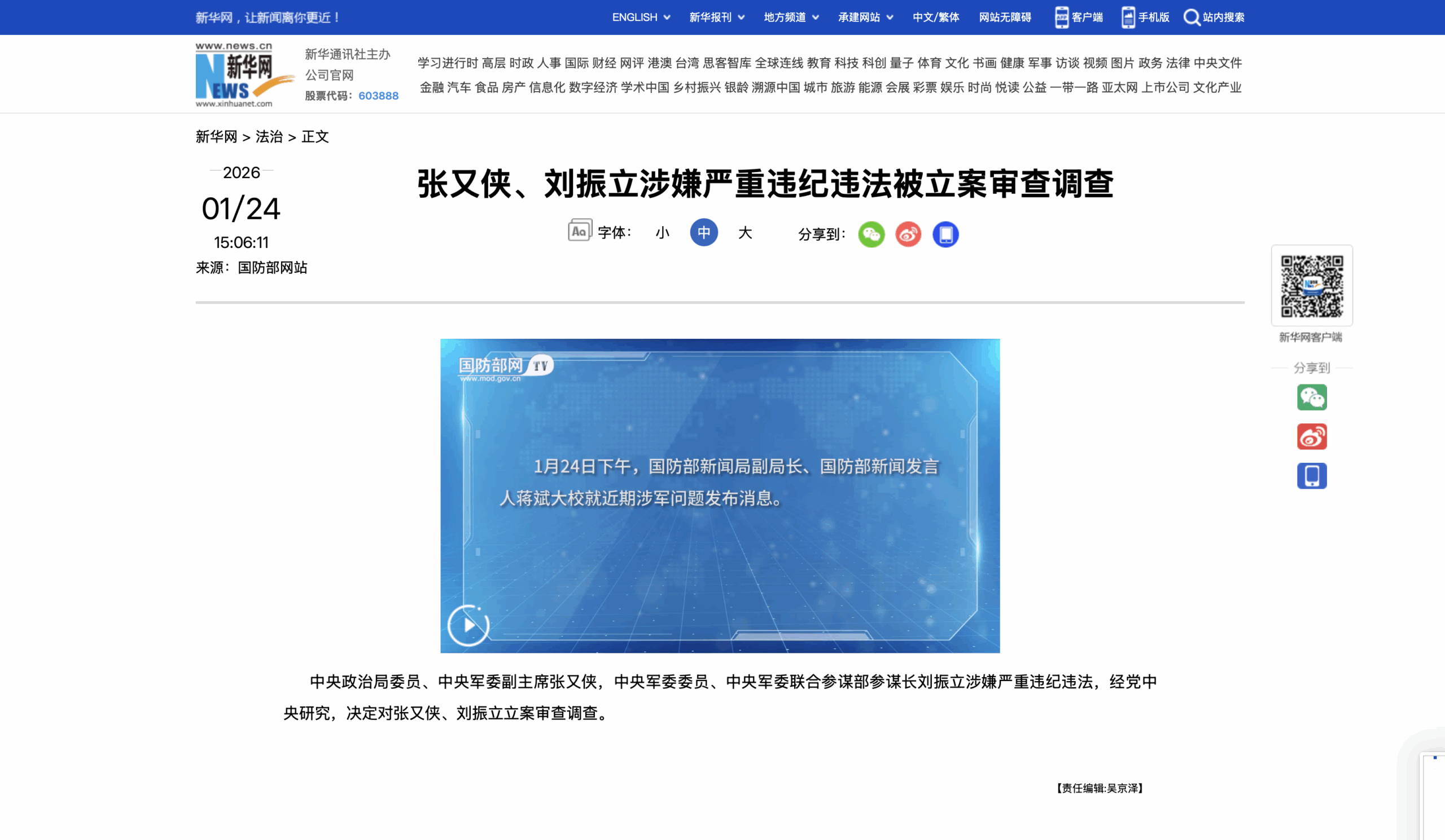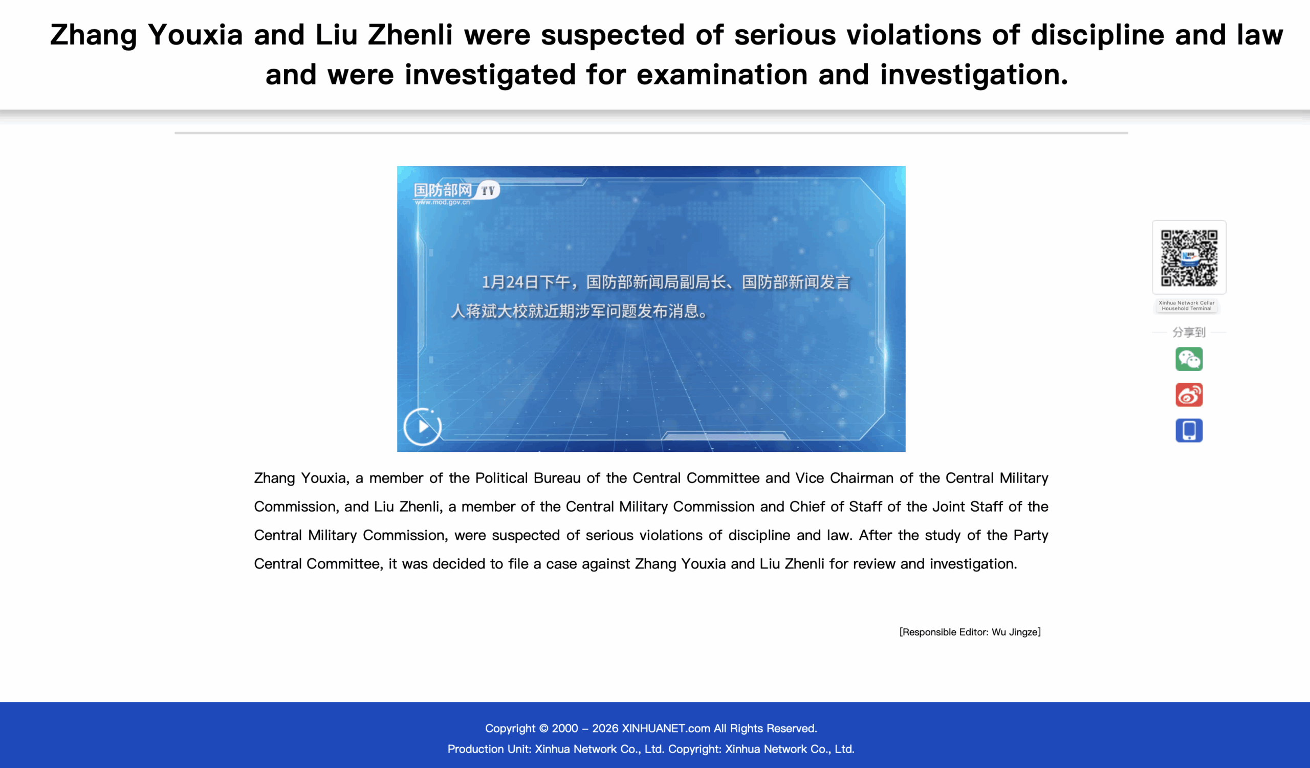 Zhang Youxia and Liu Zhenli, as senior cadres of the Party and the army, seriously failed the trust of the Party Central Committee and the Central Military Commission, seriously trampled on and destroyed the responsibility system of the chairman of the Military Commission, seriously contributed to the political and corruption that affected the Party’s absolute leadership of the army and endangered the Party’s governing foundation, seriously affected the image and prestige of the Military Commission team, and seriously impacted the political and ideological foundation of the unity and struggle of all officers and soldiers has caused great damage to the political construction, political ecology and combat effectiveness of the army, and has a very bad impact on the Party, the country and the army. Investigating and punishing Zhang Youxia and Liu Zhenli in accordance with discipline and law will definitely further clarify the source from the political, eliminate the evils ideologically, corrupt the muscles in the organizational, consolidate and deepen the achievements of political training, promote the rebirth of the people’s army, and inject strong impetus into the development of the cause of a strong military.
