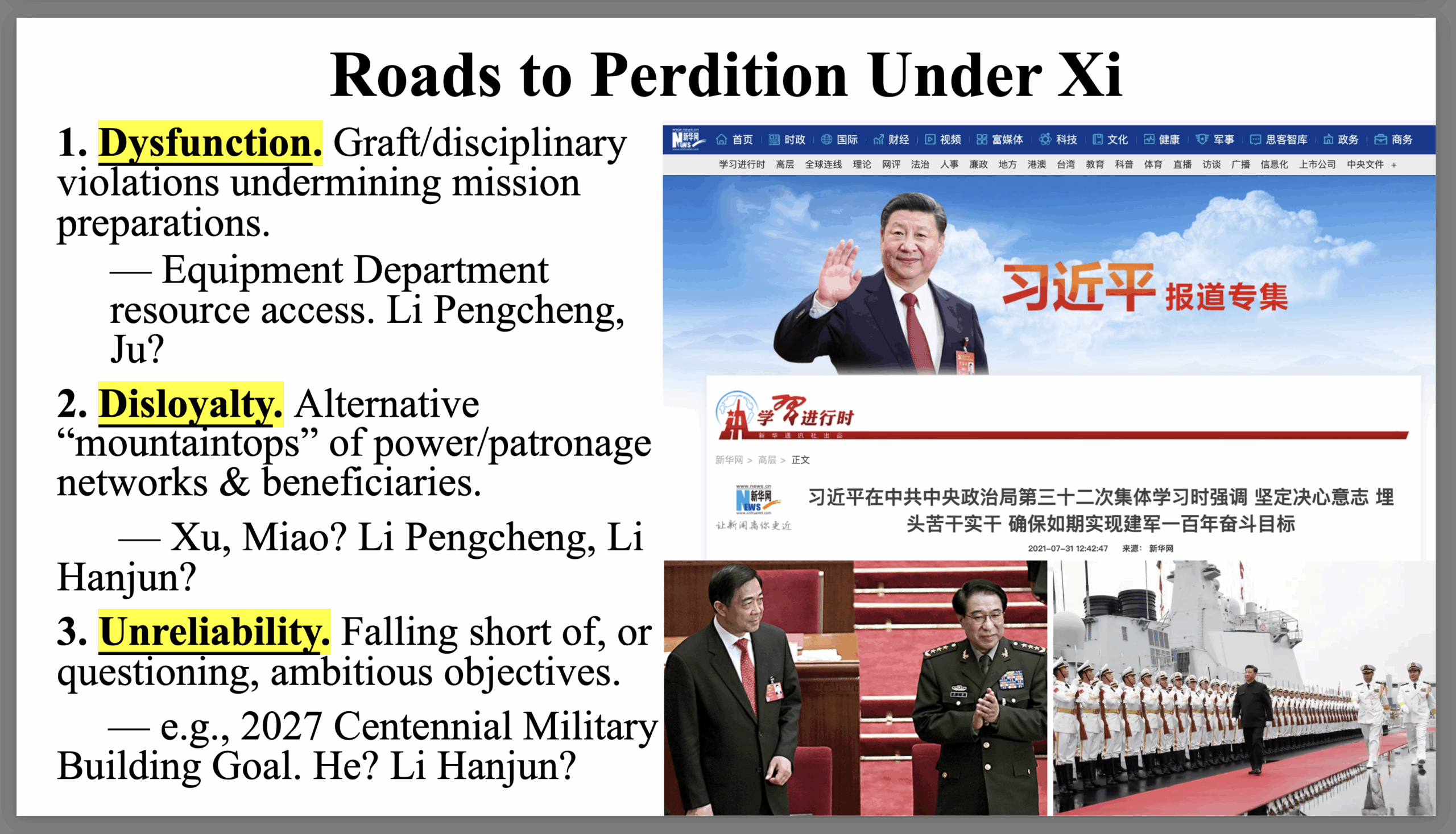 While Zhang Youxia is officially charged with #1, this fits with #2 and #3 of what I call the “Roads to Perdition Under Xi”: